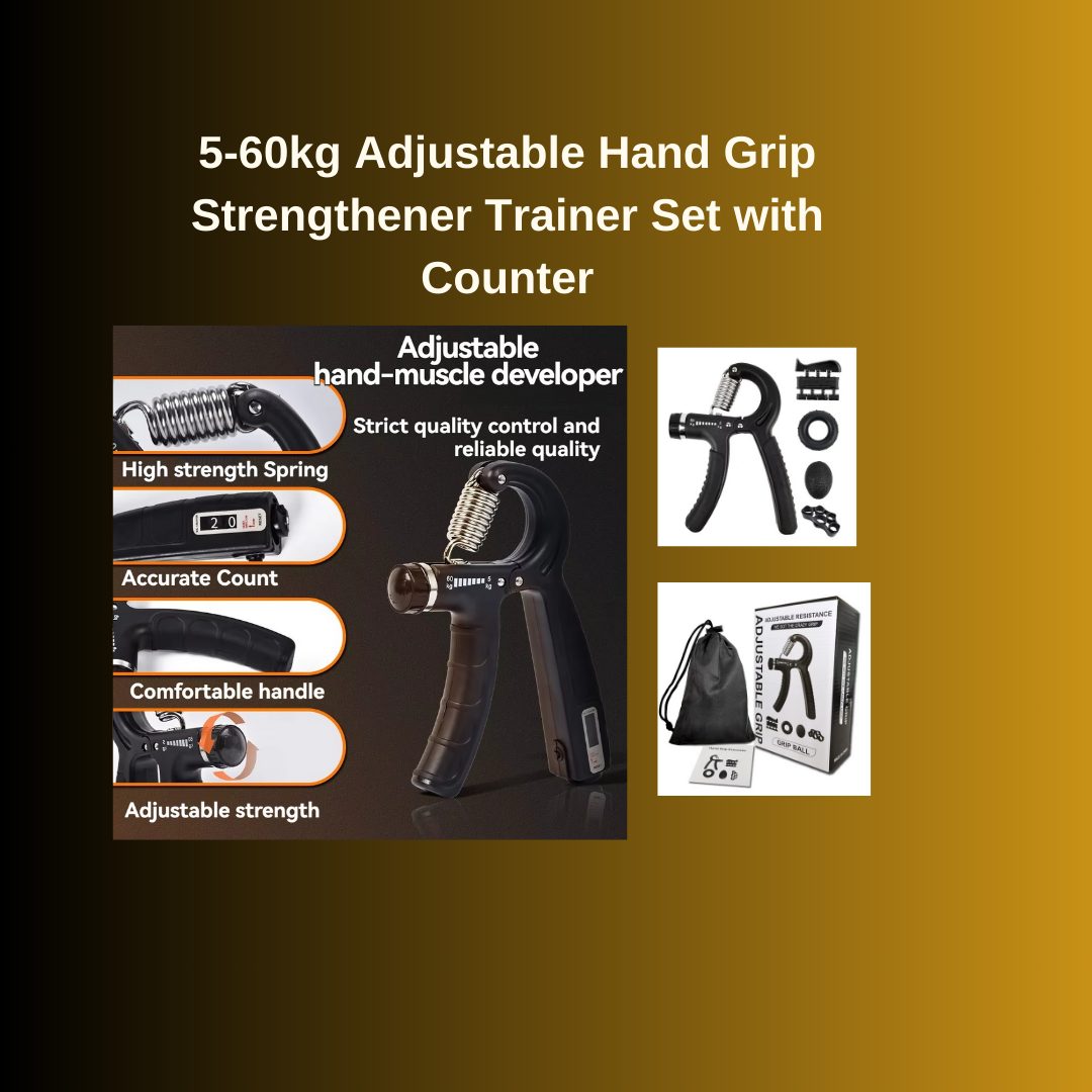 Improve grip strength with our 5-60kg adjustable hand grip strengthener. Features a built-in counter and full set for wrist, forearm & hand training.