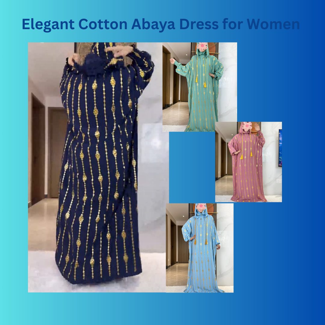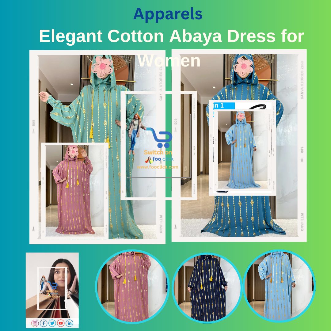 Stylish and modest cotton Abaya dress with gold dust detailing. Perfect for Ramadan, prayer, or daily wear. Includes two hats. Fooclick is an online e-commerce platform specializing in quality products with 9 main categories and 37 subcategories. It offers a wide range of products to cater to the diverse needs of customers